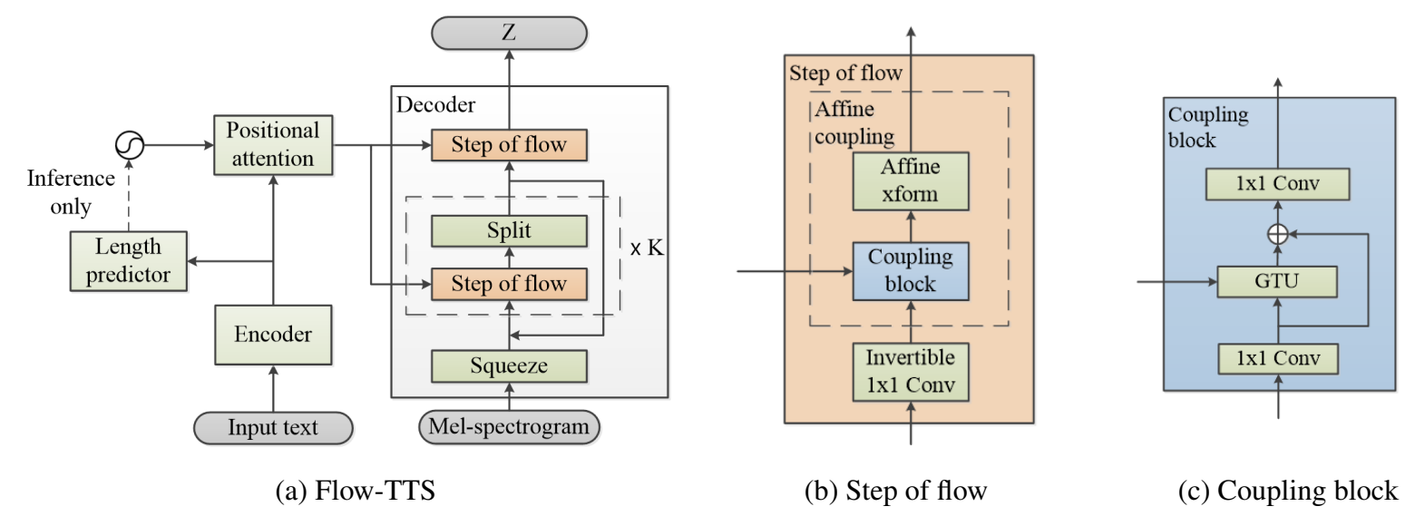 - Flow-TTS는 generative flow (Glow)를 기반으로 함