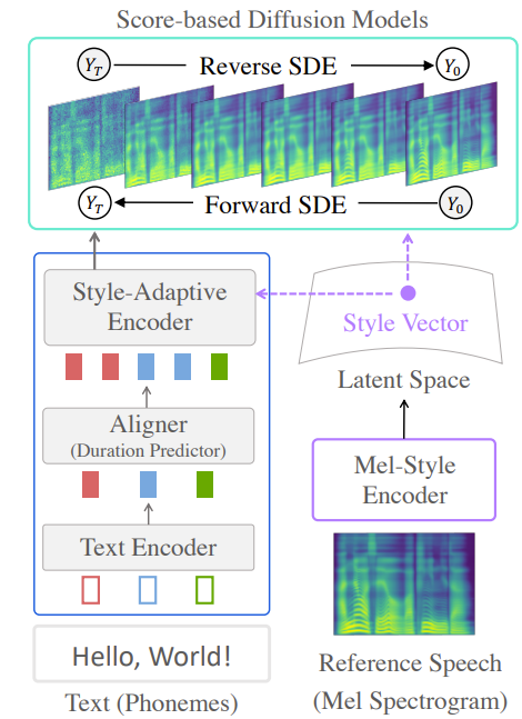 - Diffusion model을 기반으로 하는 any-speaker adaptive Text-to-Speech model