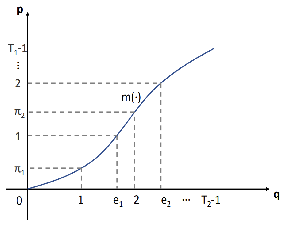 - Index Mapping Vector (IMV) $\pi$는 $\alpha$로 weighting 된 index vector $p = [0,1, ..., T_{1}-1]$의 sum으로: