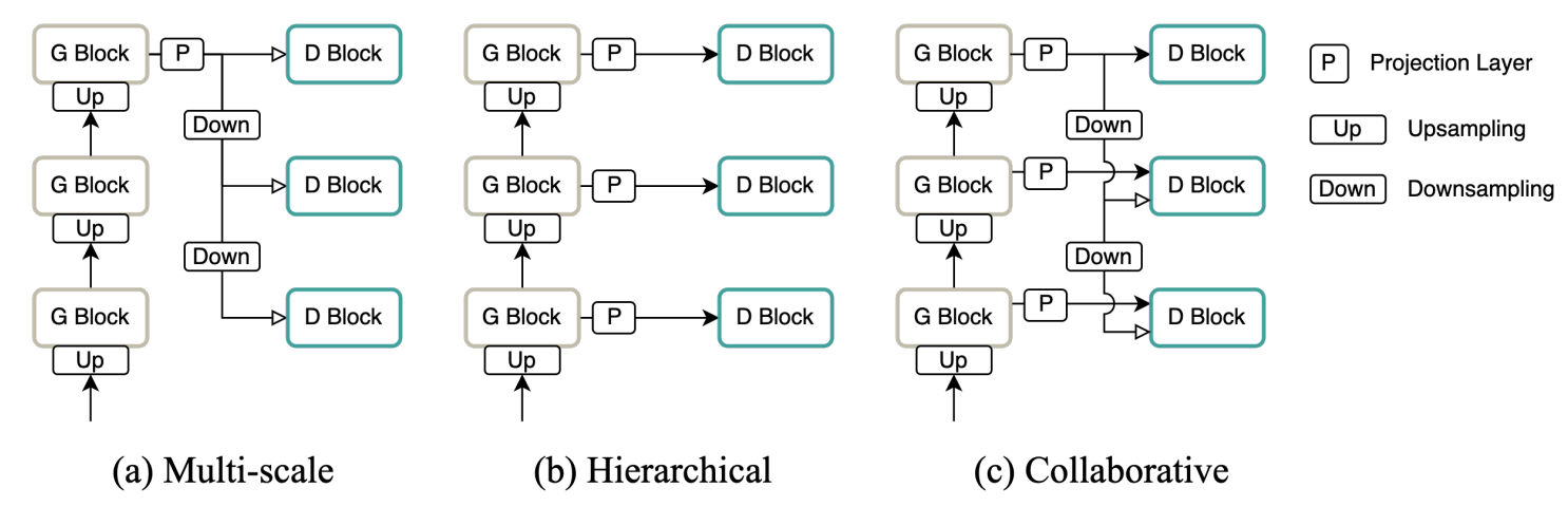 - 이런 collabortive structure를 통해 generator가 artifact를 줄이고 고품질의 waveform을 합성하는 것을 도움- 특히 multi-scale structure는 full-resolution 뿐만 아니라 downsampled waveform도 discriminate 함