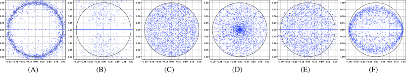 1. $[0,2\pi]$에서 $\theta$ uniform을 취하고 $[0,1]$에서 $r$ uniform을 취함