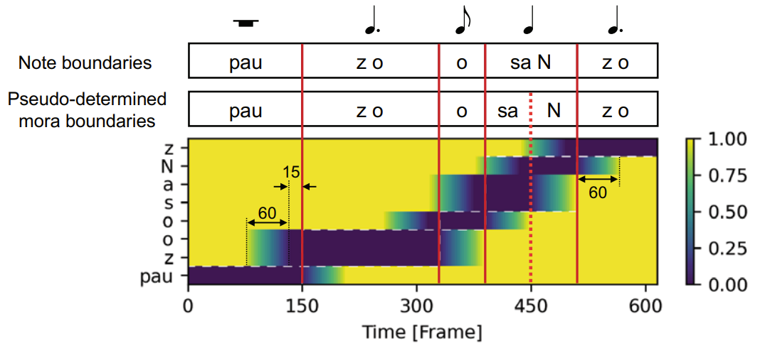 - 해당 pseudo-boundary는 각 note의 morae 수에 따라 note duration을 equally dividing하여 얻음