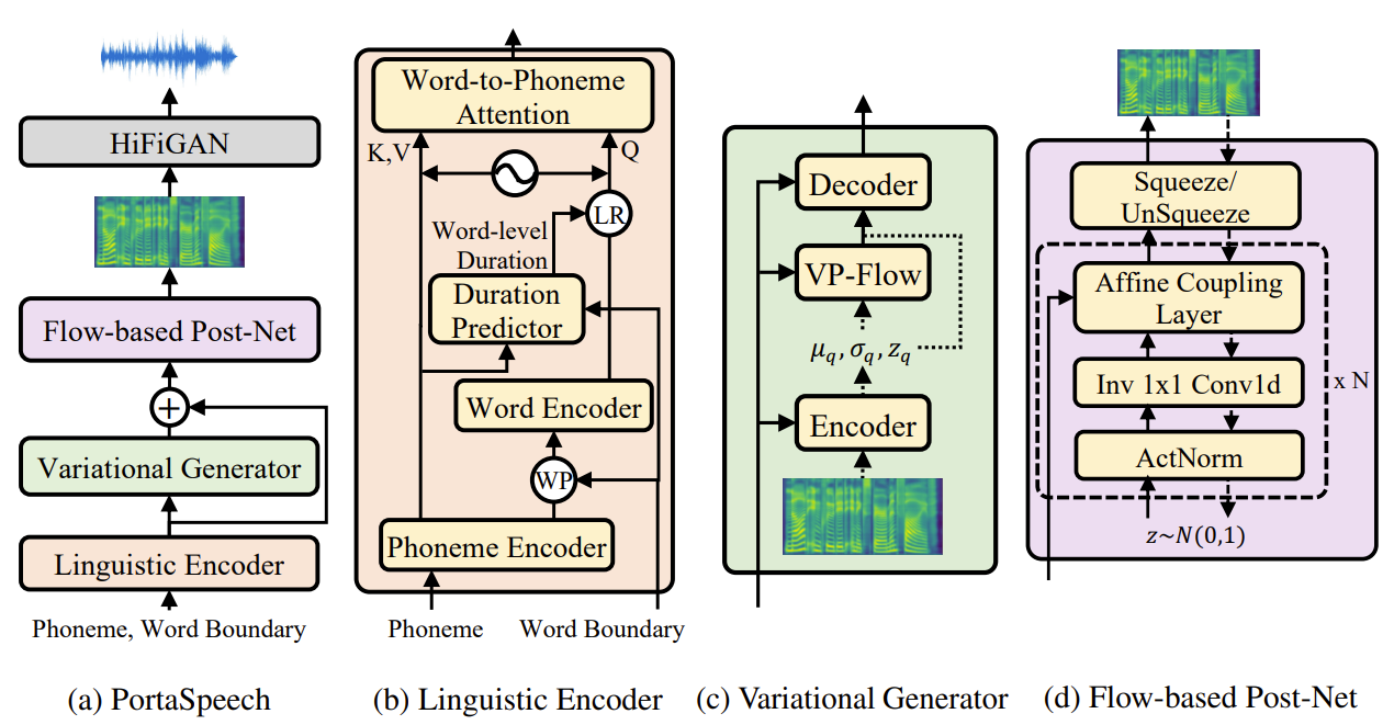 - VAE와 Normalizing Flow의 장점만을 결합하여 PortaSpeech를 구성함