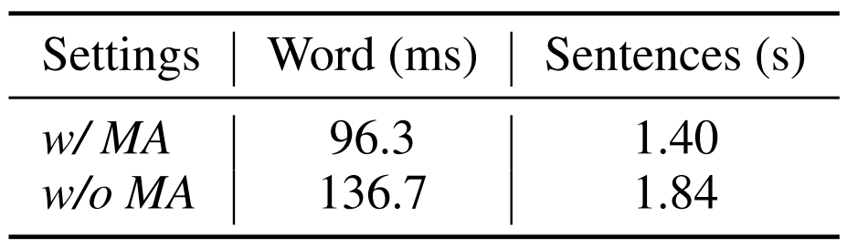 - Average Absolute Error 측면에서 비교해 보면, mixed alignment를 적용한 encoder가 duration을 더 정확하게 예측함