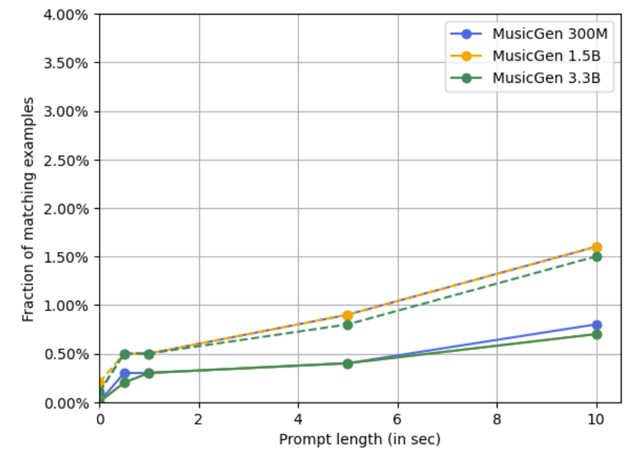 - MusicGen은 prompt length가 길어져도 우수한 memorization 성능을 보임