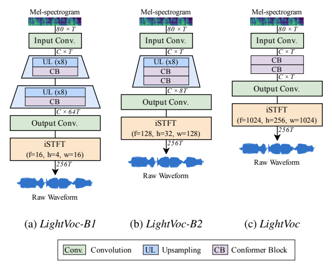 -> 그래서 Conformer와 iSTFT를 기반으로 한 upsampling-free GAN vocoder인 LightVoc를 제안