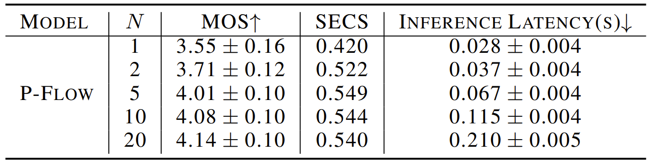 - 실제로 P-Flow는 평균 0.11초의 빠른 추론 latency를 보임