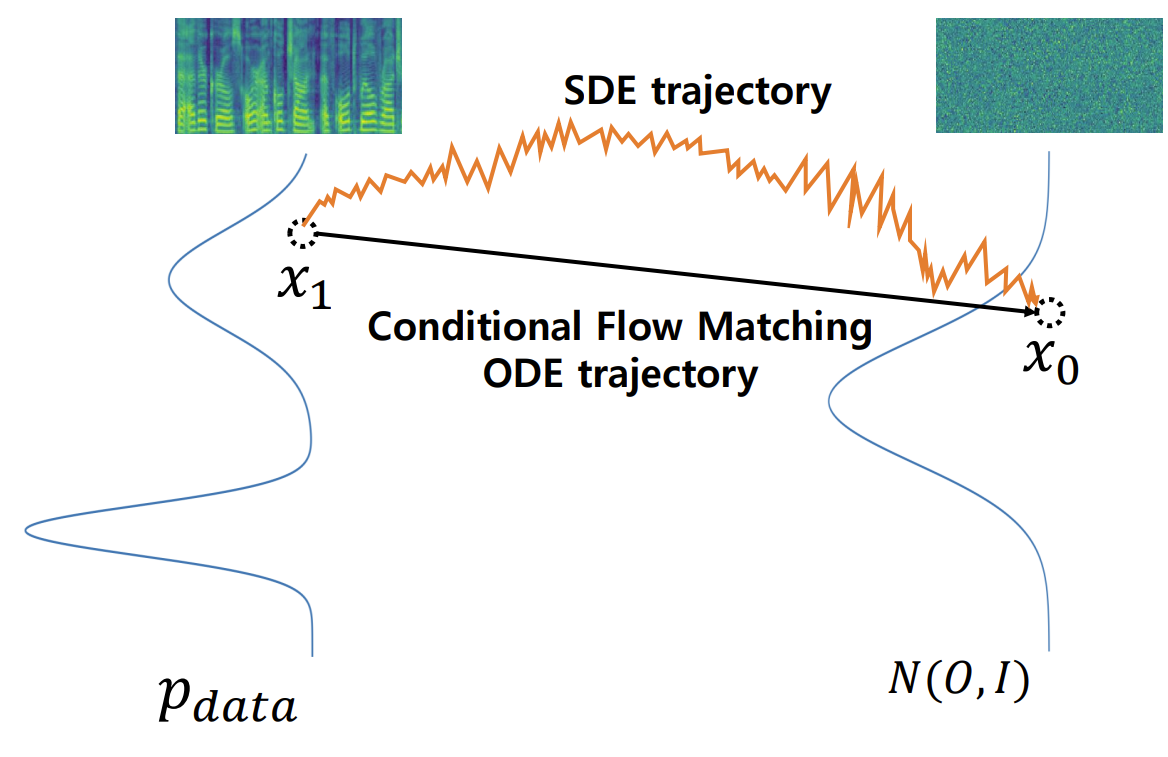 - 한편으로 flow matching과 같은 ODE-based generative modeling을 활용하여 추론 latency를 개선할 수 있음