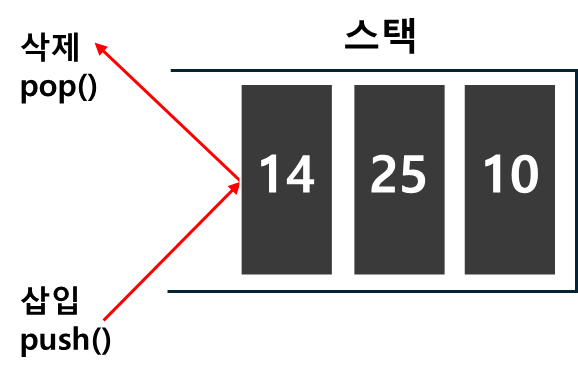 - 스택 : LIFO (Last In First Out) 형태의 자료구조