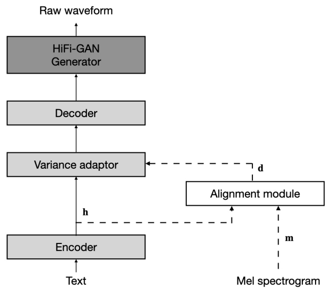 - Alignment module을 사용하여 FastSpeech2와 HiFi-GAN을 jointly training