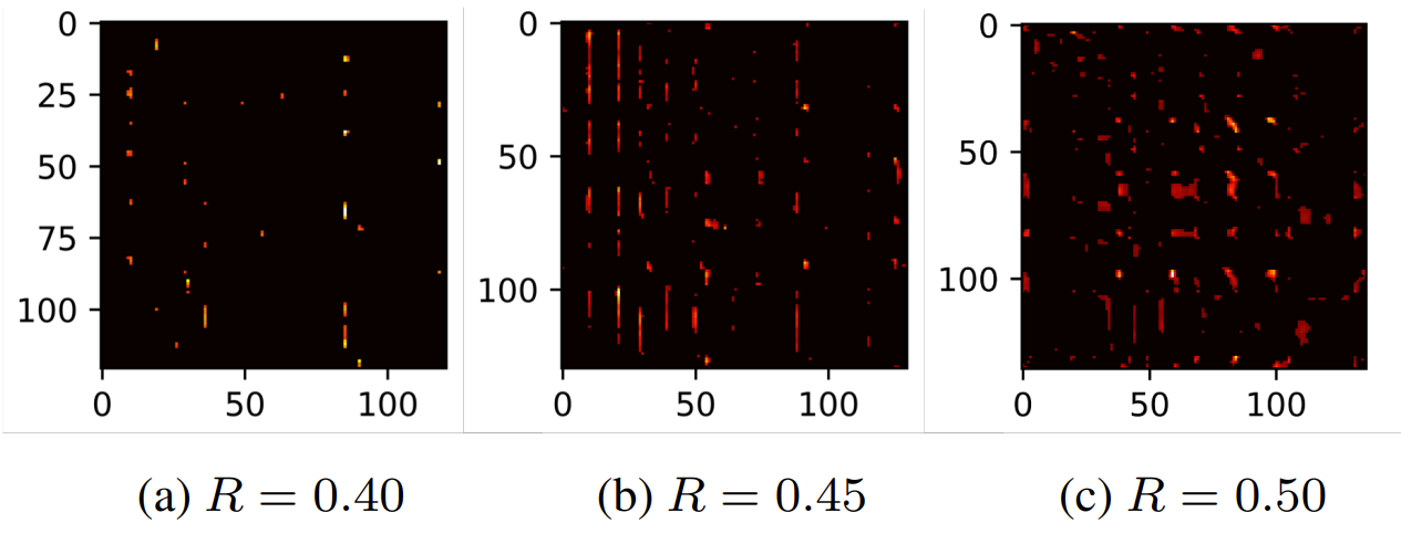 - DP의 final threshold를 확인해 보면, $R$이 작을수록 threshold $\theta$가 커지므로 더 많은 connection이 pruning 됨