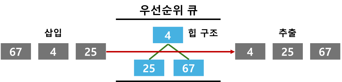 #우선순위 큐에서 우선순위에 따라 값 추출 (최소힙 기준 - 작을수록 높은 우선순위)