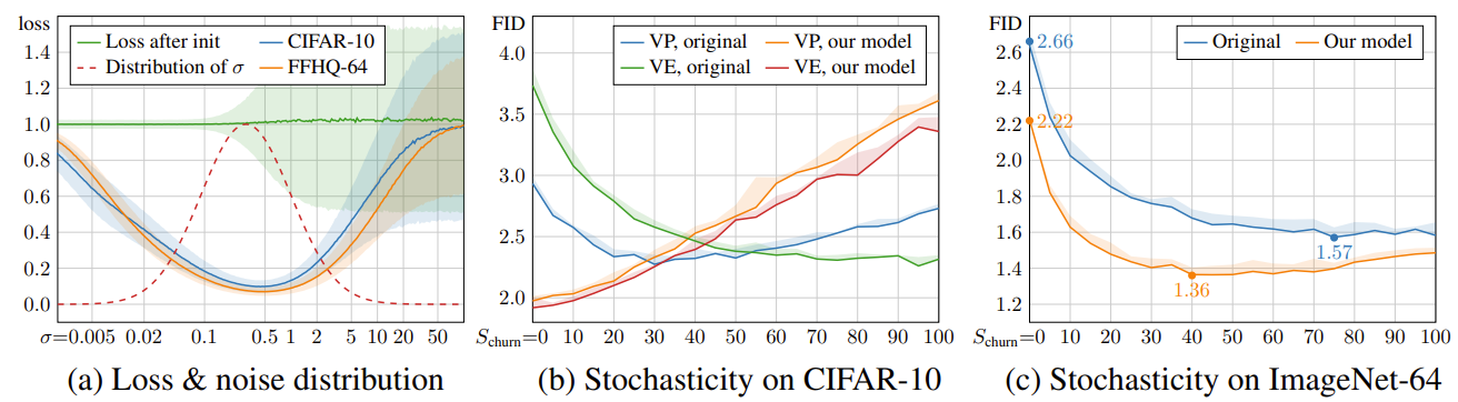- 일반적으로 사용되는 DDPM, NCSN을 기반으로 network input/output에 대한 pre-conditioning, diffusion model의 loss function 등을 평가하여 training dynamics를 개선할 수 있는 방법을 탐색