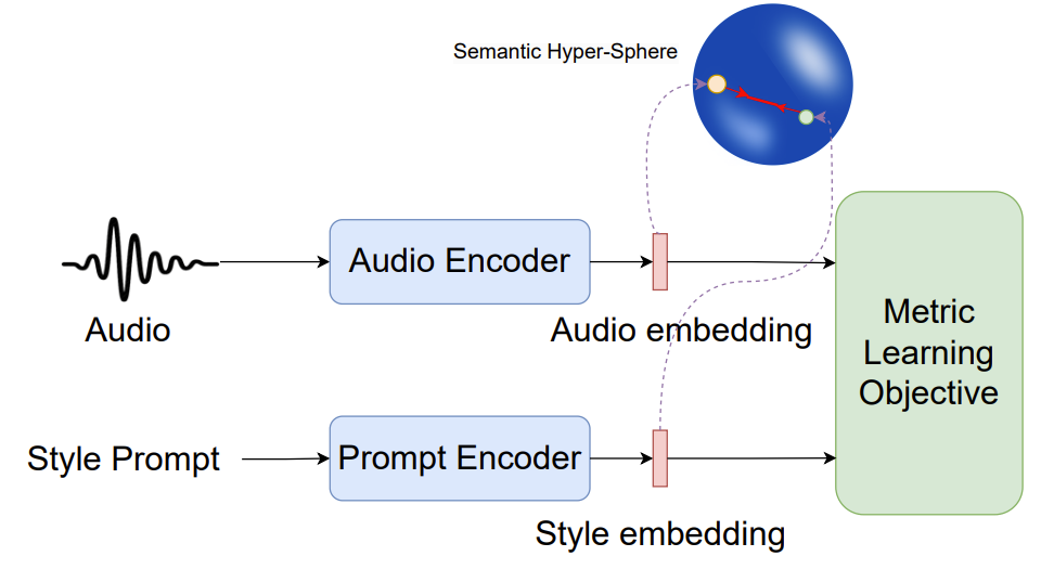 - Training stage의 목표 중 하나는 style prompt embedding과 audio embedding 사이의 distance를 최소화하는 것