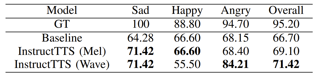 - 추가적으로 expressiveness modeling 측면에서도 InstructTTS가 가장 높은 성능을 보임