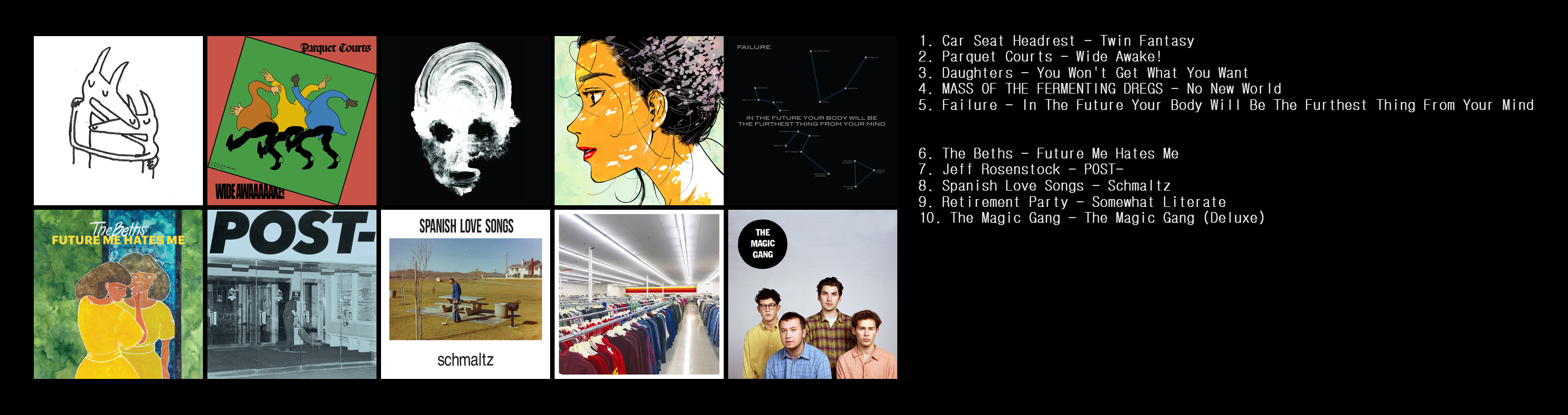 : Bandcamp 최고의 아웃풋, 2010년대 최후의 인디 록스타, Car Seat Headrest가 11년도에 발매했던 동명의 앨범의 재녹음 버전입니다. 11년도 버전과 18년도 버전 중 어느 것이 최고인가는 항상 논쟁거리이지만, 분명한 것은 18년도의 <Twin Fantasy>가 아니었다면 Car Seat Headrest는 지금 같은 인기를 얻지는 못했을 것입니다.