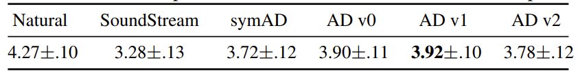 - SymAD (Symmetric AudioDec)와 SoundStream 간의 성능 차이는 AudioDec의 MPD가 효과적이라는 것을 나타냄