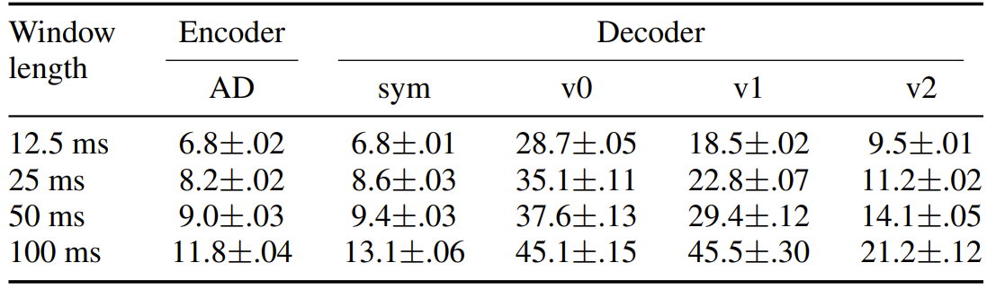 - Encoder는 input audio signal의 limited essential information을 preserve 하는데 중요함 - 즉, asymmetric architecture는 unstable 할 수 있고 symmetric architecture는 inefficient 함