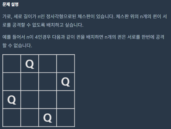 - N-Queen 문제 예시 : 프로그래머스 - N-Queen