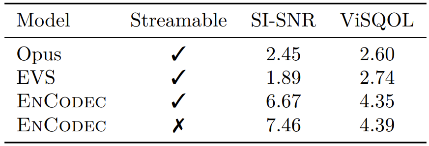 - BUT, EnCodec은 여전히 강력한 streamable 추론 성능을 보임