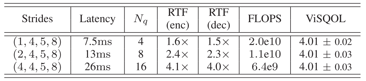 - Single frame의 encoding/decoding이 더 긴 audio sample에 해당하므로 latency를 늘리면 real-time factor가 증가함