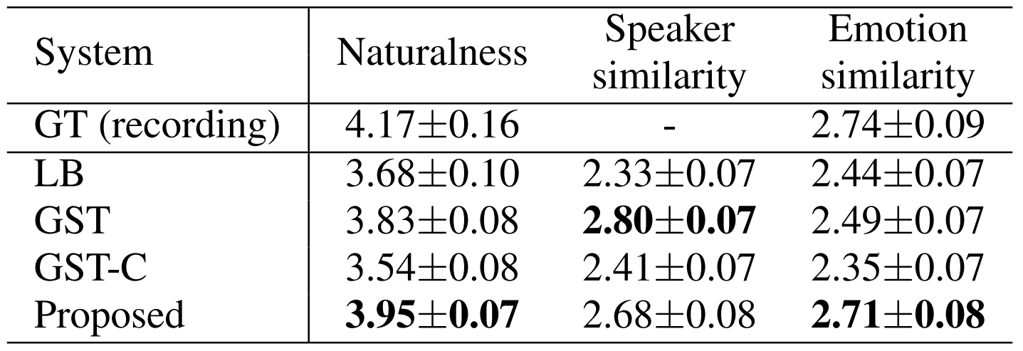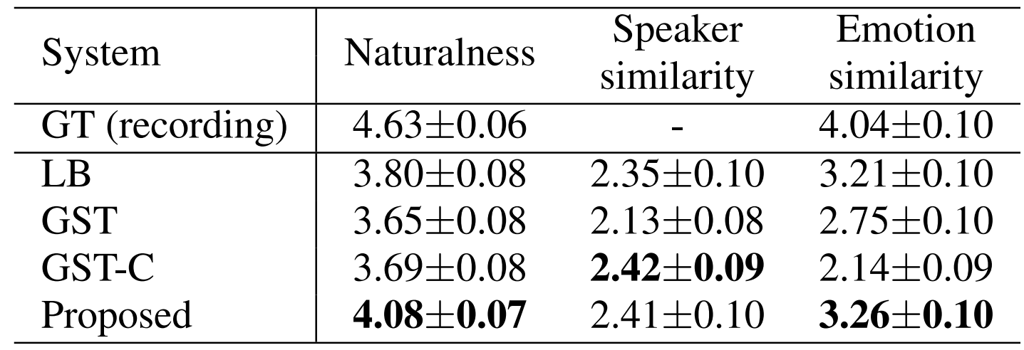 - 결과적으로 multi-lingual, multi-speaker 환경에서 기존 reference-based TTS 보다 뛰어난 emotion transfer 성능을 달성
