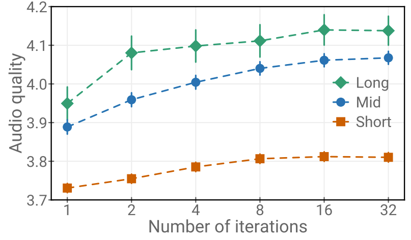 - 다양한 RVQ level에 대한 decoding iteration 횟수의 영향을 확인해 보면