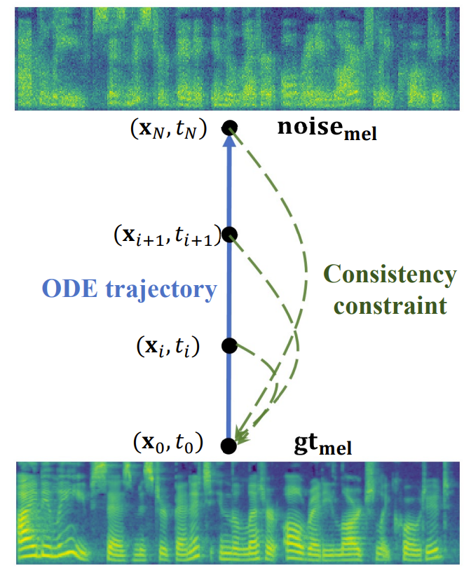 - Pre-trained diffusion-based teacher model에서 distillation을 통해 얻어지는 consistency model을 음성 합성에 활용