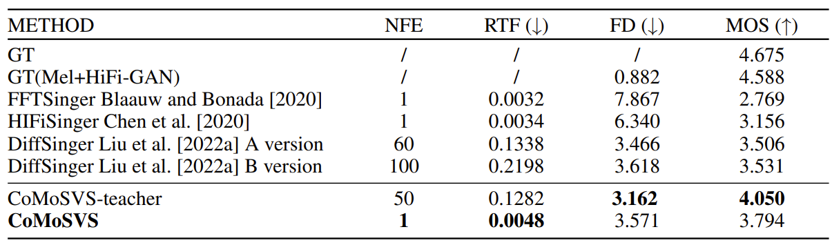 - 결과적으로 single-step sampling 만으로도 TTS, SVS 작업 모두에서 고품질의 audio를 합성할 수 있음