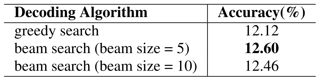 - Beam search decoding의 accuracy는 greedy search 보다 뛰어남