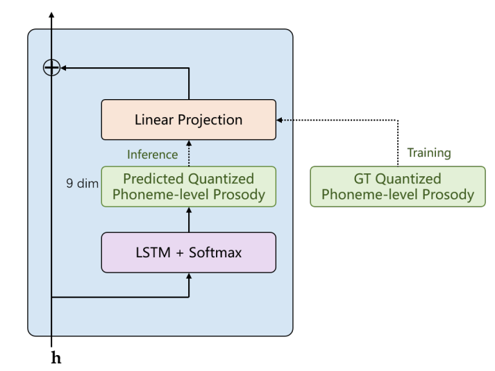 - Training에서는 ground-truth quantized PL prosody를 사용하고, 추론 시에는 예측된 PL prosody를 사용