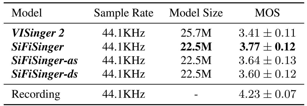 - MOS 측면에서도 SiFiSinger가 가장 우수한 것으로 나타남