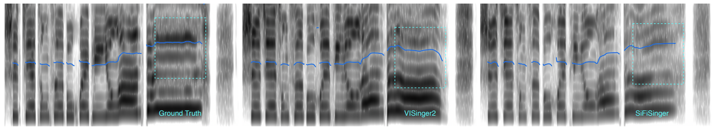 - Pitch contour를 확인해 보면 VISinger2는 부정확한 descending tone을 생성하지만, SiFiSinger는 ground-truth의 pitch contour와 가까운 결과를 생성함