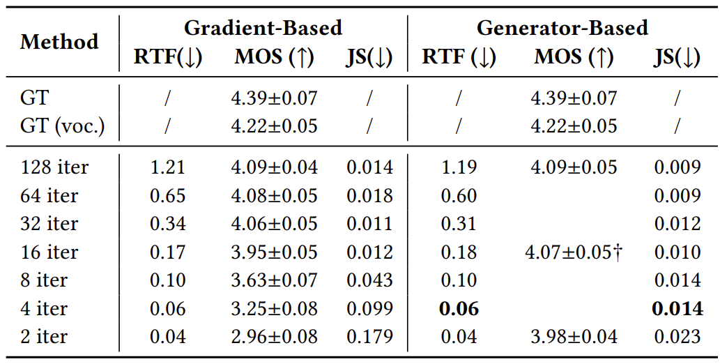 - 즉, sampling step을 줄이면 perceivable background noise가 발생하고 합성 품질이 저하됨