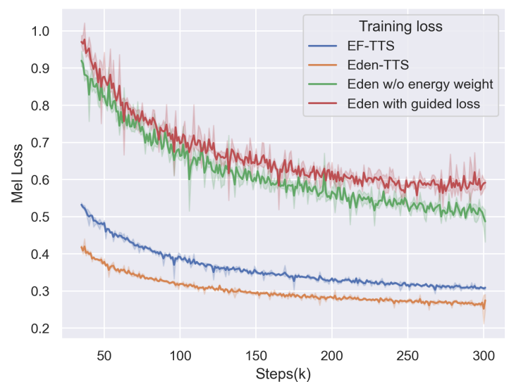 - BUT, guided loss의 constraint가 충분히 강력하지 않기 때문에 Eden-TTS에서 해당 방식은 효과적으로 동작하지 않음