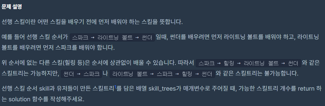 for skill_tree in skill_trees: #각 스킬 트리에 대해