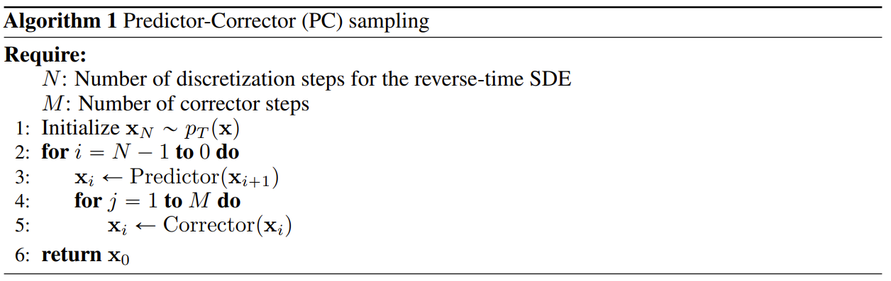 - 한편으로 numerical SDE solver와 score-based MCMC solver를 결합한 Predictor-Corrector (PC) sampler를 도입해 기존의 sampling 방식을 개선