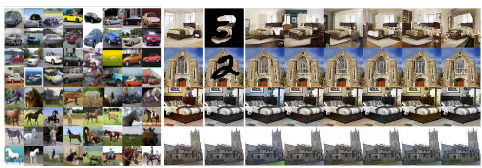 - 이때 일부 case에 대해서는 $\log p_{t}(\mathbf{y}|\mathbf{x}(t))$를 학습하기 위해 개별적인 모델을 training 하거나 heuristics, domain knowledge를 사용하여 gradient를 추정할 수 있음 - 따라서 논문은 위 approach를 통해 class-conditional generation, image imputation, colorization task에 접근함