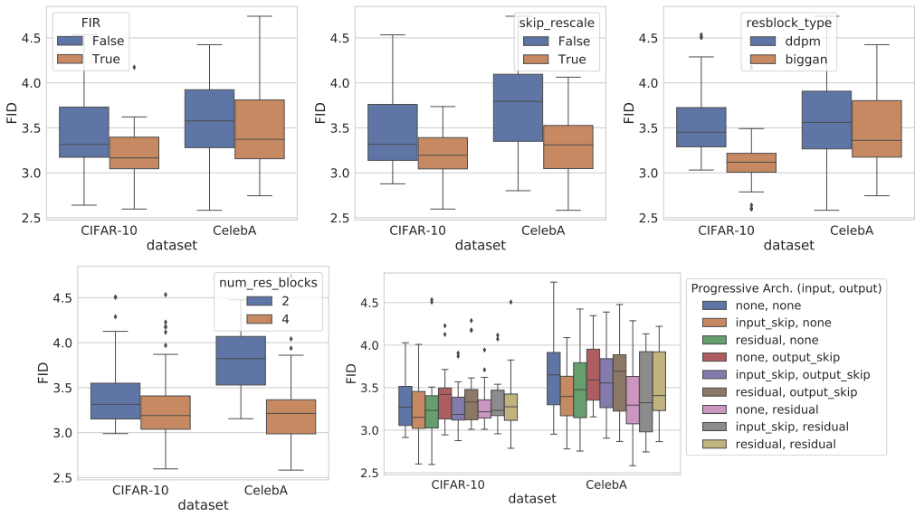 - 실제로 해당하는 NCSN++ cont.나 DDPM++ cont.가 다른 architecture 보다 가장 우수한 성능을 보임