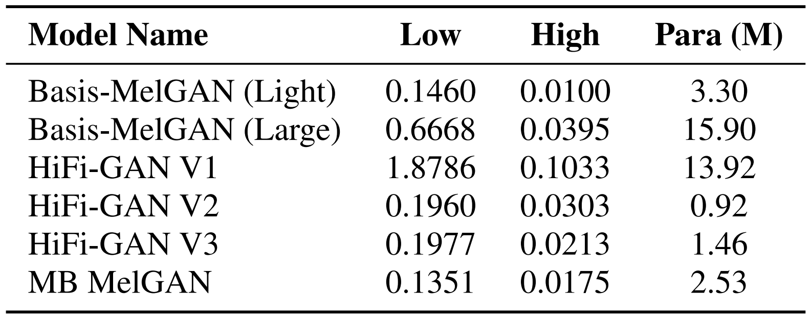 - Comparisons : HiFi-GAN, Multi-Band MelGAN