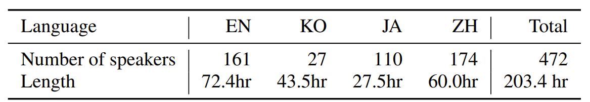 - Dataset : English, Korean, Japanese Mandarin dataset