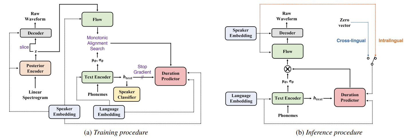 - 이때 text encoder와 duration predictor에만 해당 language embedding을 제공함