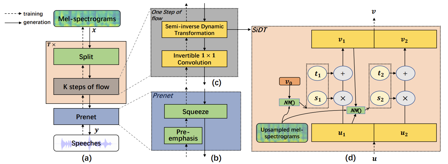 - WaveGlow의 Affine Coupling Layer의 계산 효율성을 개선하기 위해 Semi-inverse Dynamic Transformation module을 도입