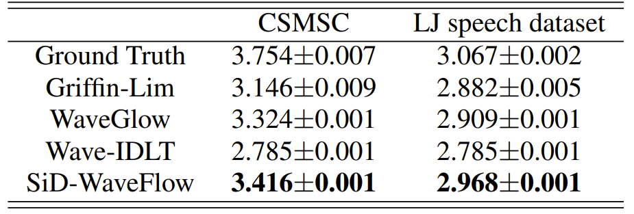 - Comparisons : WaveGlow, Wave-IDLT