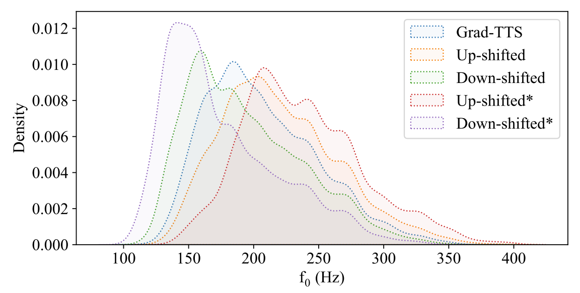 - 추가적으로 CREPE를 통해 edited region의 $f_{0}$를 추출해 보면, EdiTTS에서 pitch shift kernel을 통해 pitch shift를 직접적으로 control 할 수 있는 것으로 나타남