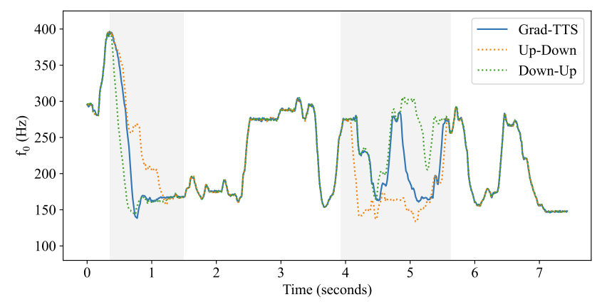 - Robust denoising process를 활용하여 pitch와 같은 conditional input 없이도 자연스러운 음성 합성이 가능