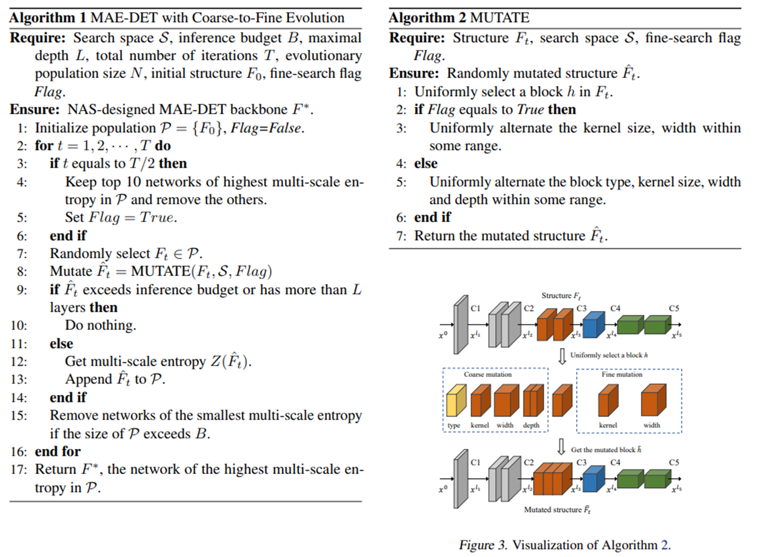 - MAE-DET는 Evolutionary Algorithm (EA)를 사용하여 detection backbone의 Multi-Scale Differential Entropy를 최대화