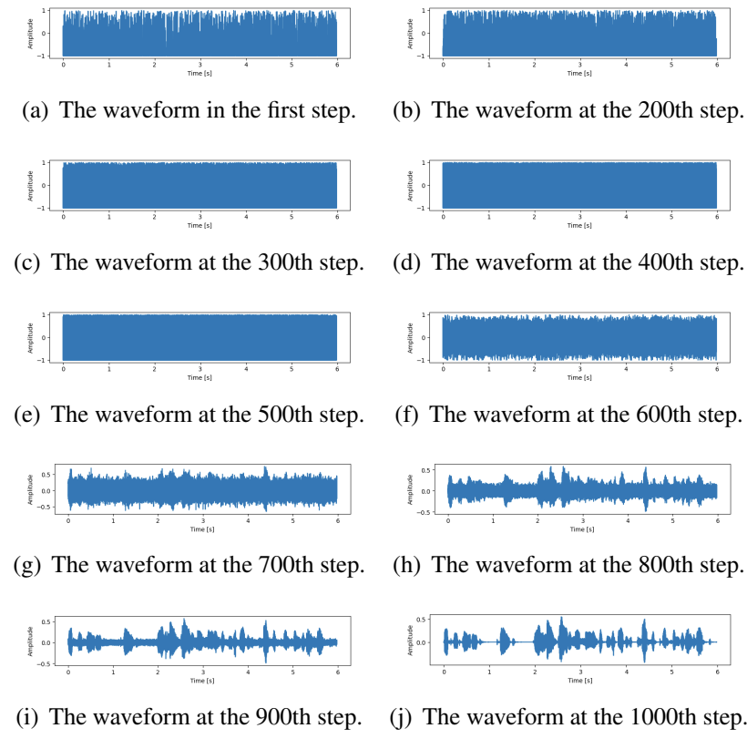- 아래 그림과 같이 ItoWave는 매 step 마다 Gaussian noise를 점진적으로 개선하는 것을 확인할 수 있음
