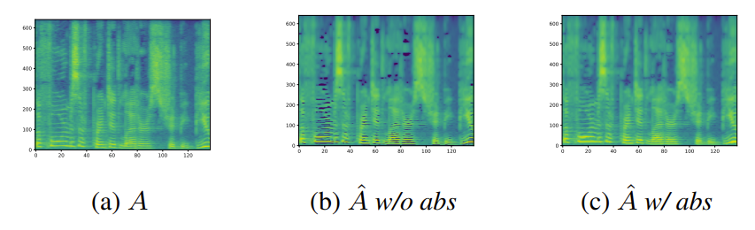 - 추가적으로 $\text{Abs}$ function을 통한 amplitude spectrogram estimation error를 크게 줄일 수 있음
