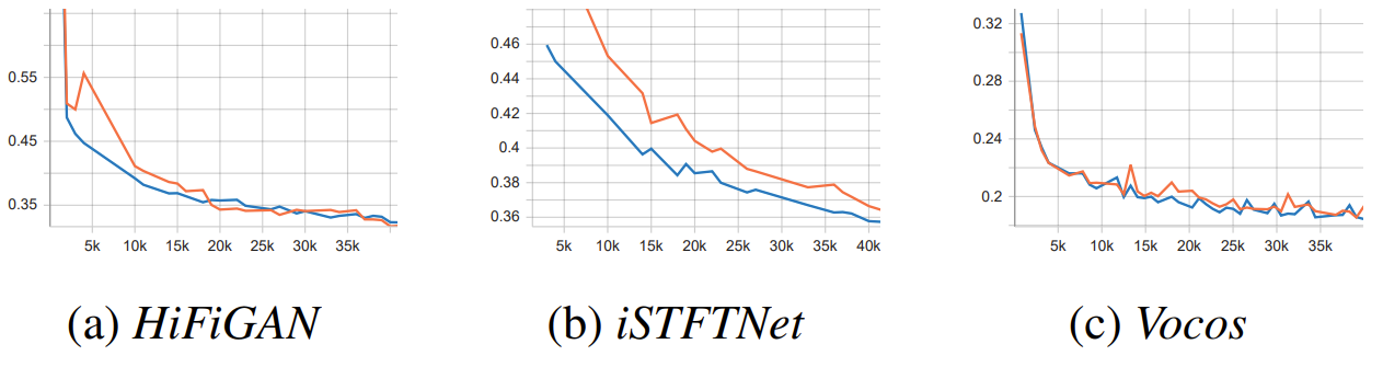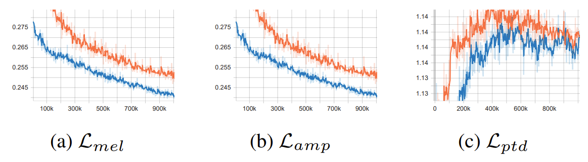 - (a), (b)와 같이 amplitude spectrum branch의 parameter가 줄어들어도 관련 loss는 APNet 보다 낮게 유지됨